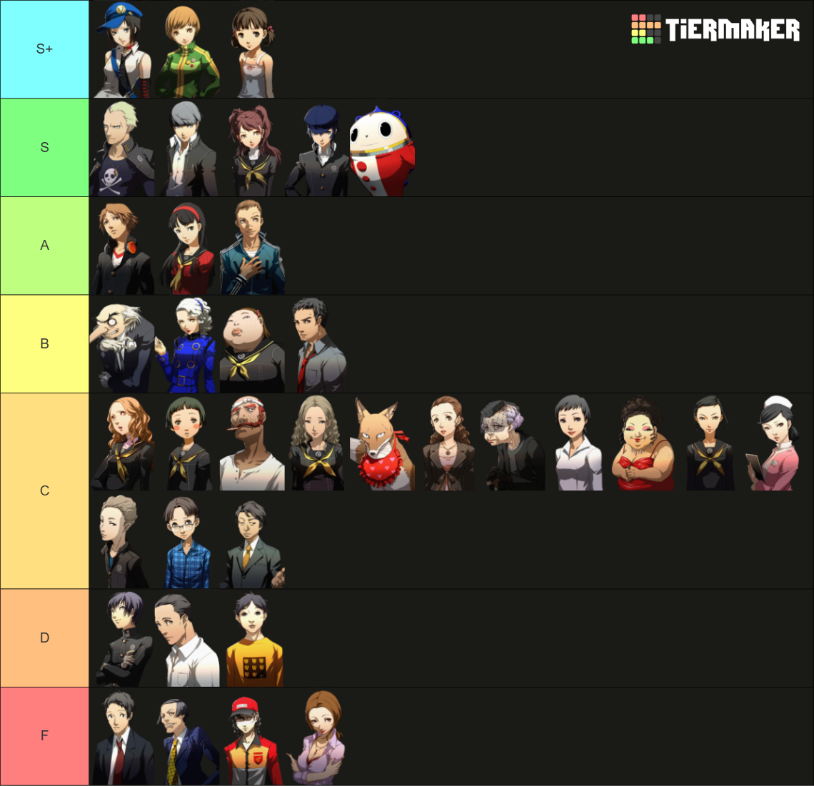 I actually don't know much about a lot of the Persona 4 characters so I put them in C lol